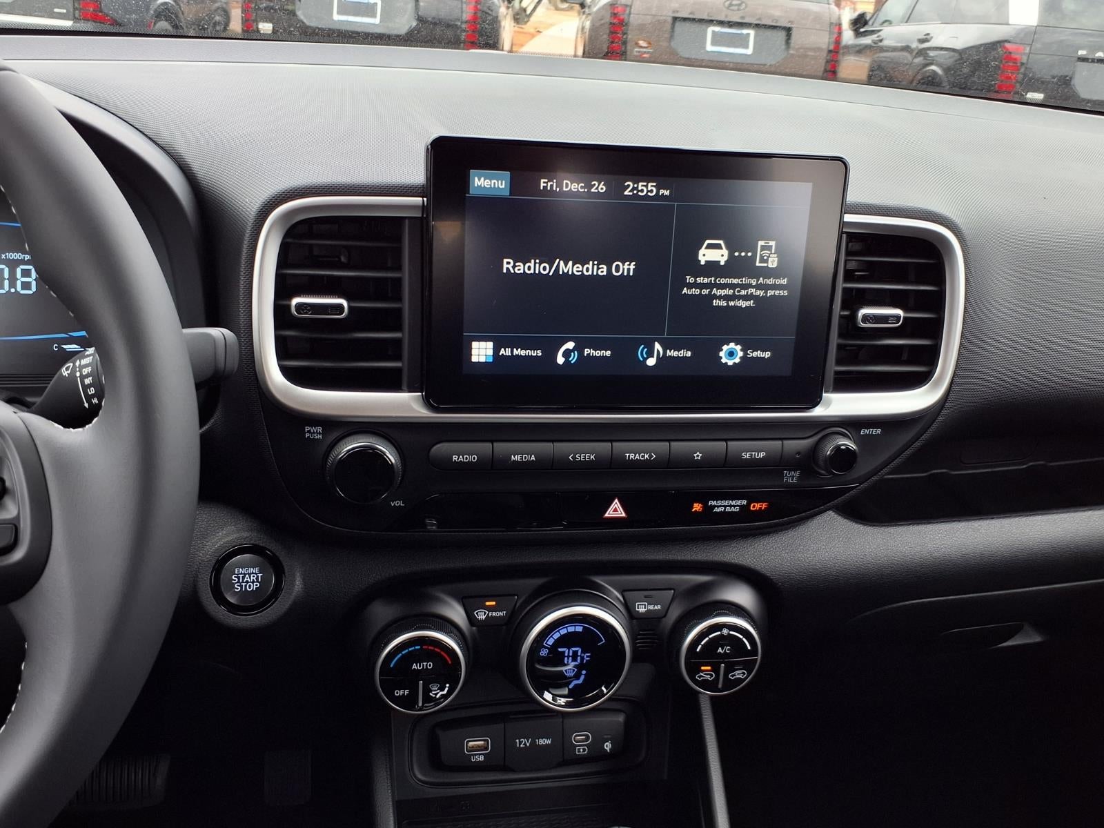 This small suv stays safely in its lane with Lane Keep Assist. Protect this 2026 Hyundai Venue from unwanted accidents with a cutting edge backup camera system. Bluetooth® technology is built into the Hyundai Venue, keeping your hands on the steering wheel and your focus on the road. This vehicle offers Automatic Climate Control for personalized comfort. This small suv offers Android Auto for seamless smartphone integration. Apple CarPlay: Seamless smartphone integration for this model - stay connected and entertained on the go! It has a 4 Cyl, 1.6L high output engine. With the keyless entry system on this Hyundai Venue you can pop the trunk without dropping your bags from the store. Maintaining a stable interior temperature in this vehicle is easy with the climate control system. This unit emanates grace with its stylish gray exterior. This small suv is front wheel drive. Electronic Stability Control is one of many advanced safety features on this model.